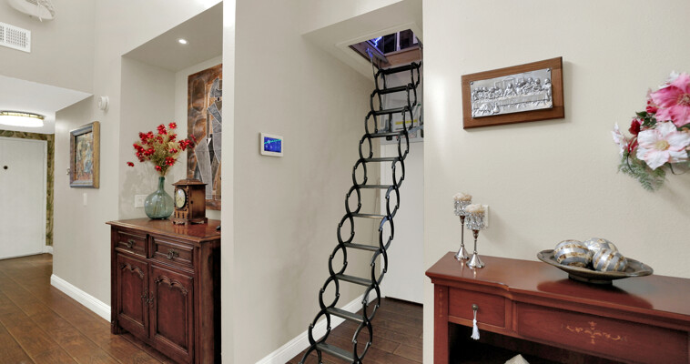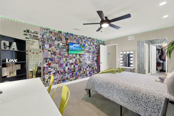An extra upstairs bedroom/office with heating, air conditioning, and additional storage provides versatile living space. Stay comfortable year-round with a premium high-end air conditioning unit. The home boasts updated kitchen and backsplash with newer LG luxury appliances, custom-designed closets and cabinetry, and elegant wallpaper accents for a modern touch.